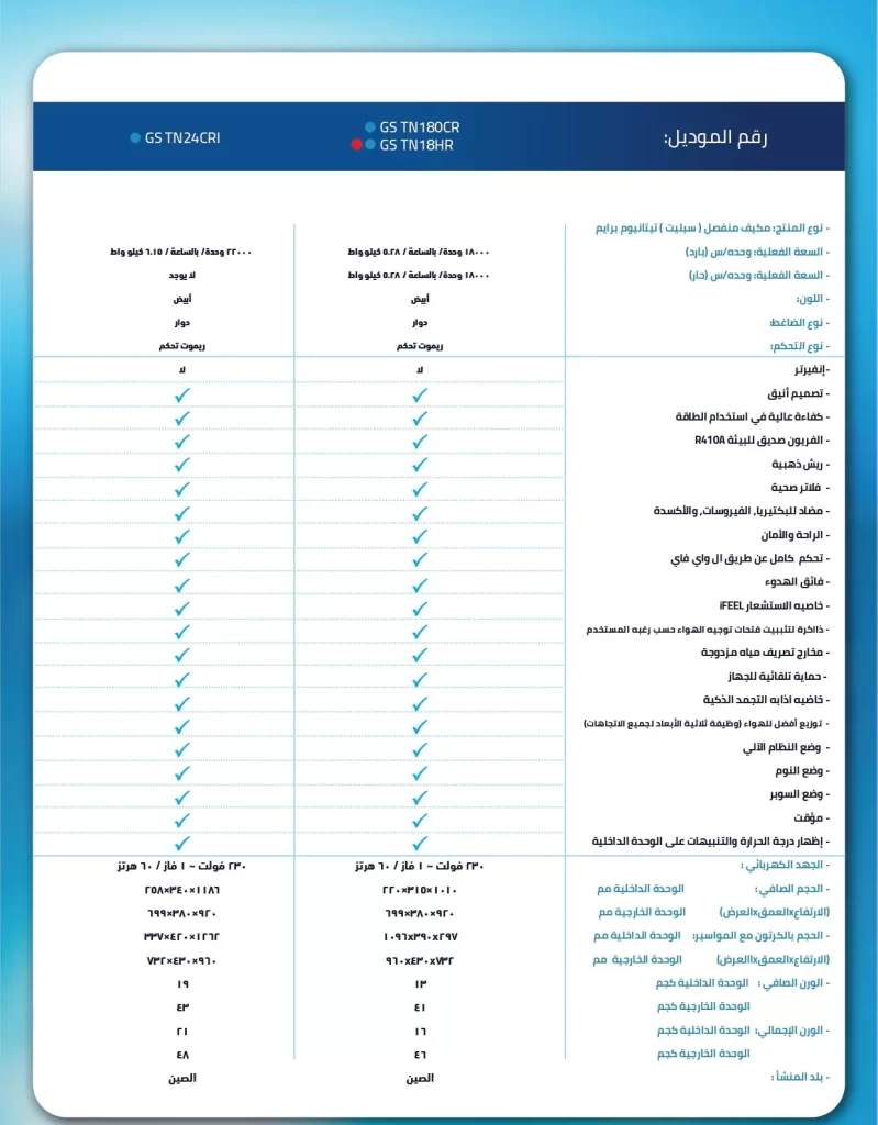 جنرال سوبريم مكيف هواء سبليت تيتانيوم برايم, سعة تبريد حقيقية 18,000 وحدة ريش ذهبية, تحكم واي فاي,خاصية الأستشعار, توزيع الهواء في اربع اتجاهات.